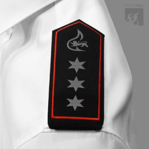 Diensthemd mit Stick "Signet Feuerwehr BAWÜ Ortsname" oberhalb der herzseitigen Brusttasche!